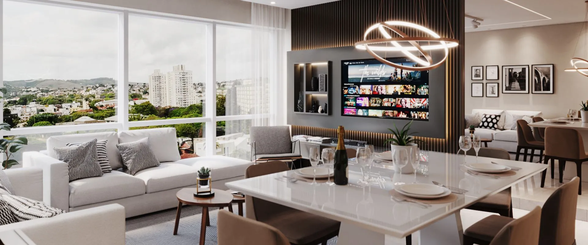 As janelas amplas favorecem a entrada de luz natural e tornam os espaços mais agradáveis ao longo do dia. Além disso, a proposta do projeto permite personalização por meio do Excluseven, com o apoio de arquitetos especializados, o que torna cada unidade ainda mais alinhada ao estilo do morador.